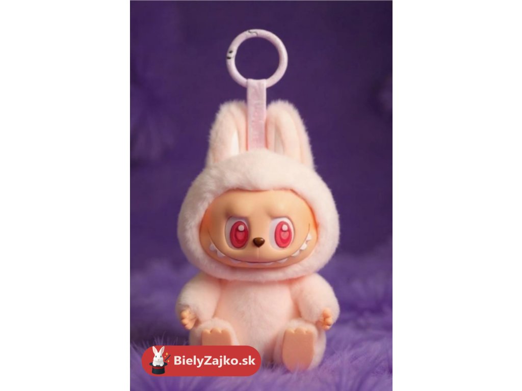 - Zberateľská figúrka Pop Mart v ružovom huňatom oblečku s brmbolcami