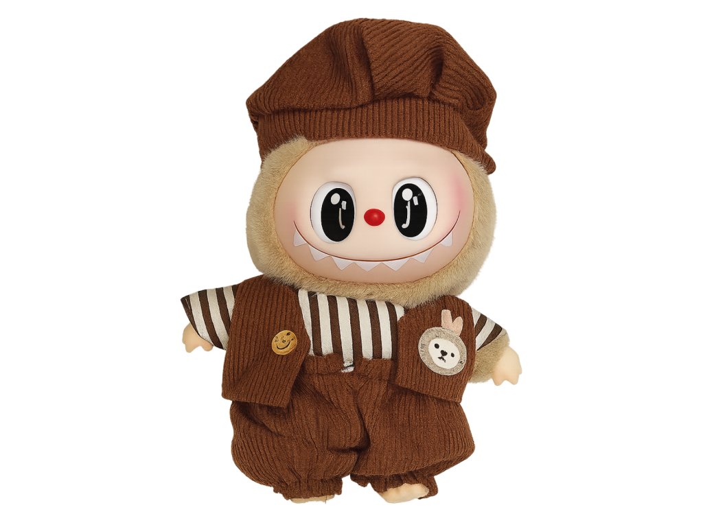 Táto výnimočná zberateľská figúrka zo sveta Pop Mart spája roztomilosť s retro módnym štýlom. Figúrka má široký úsmev, typické veľké očká a oblečenie, ktoré pôsobí ako z malej módnej prehliadky – hnedá čiapka, pruhované tričko, nohavice a vesta s nášivkou zajačika robia z tejto postavičky nezameniteľný kúsok. Každý detail je precízne spracovaný a oblečenie je ušité z jemnej látky, čo z nej robí nielen figúrku, ale aj umelecký doplnok.